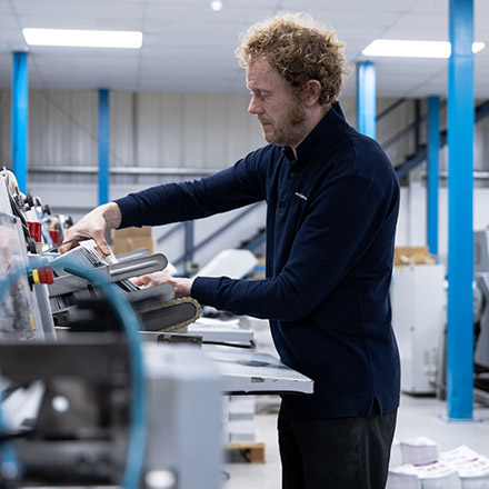 We offer a range of finishing in-house. This means that we can perfect bind, glue, stitch, collate, emboss, deboss, CAD cut, miniature fold and glue, die cut, ram punch, laminate, foil and mail all under one roof; all of this allows us to work to tighter deadlines and offer more competitive rates without compromising quality.
